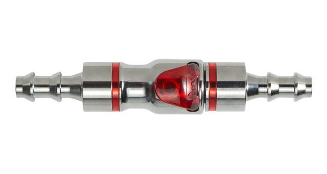 1/8" Flow Everis LQ2 with 1/4" Locking Hose Barb, Valved In-Line Liquid Cooling Coupling Insert, Warm Red