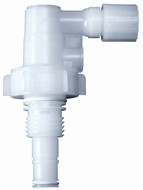 DQPUR120112203 - Entnahmekopf mit 3/4" Flare, PVDF Simriz® FFKM Dichtung (Medienfluss), FKM Dichtung (Belüftung), PEEK Feder